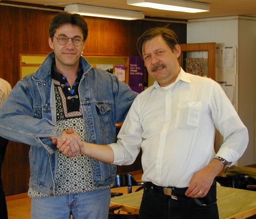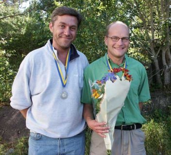 | BG Olofsson och Tom Gärds tog hem silvermedaljerna när öppna par-SM avgjordes i Skövde 2002. Paret låg med i toppen från start och var hela tiden nära slutsegrarna Mårten Gustawsson och Svante Ryman. |