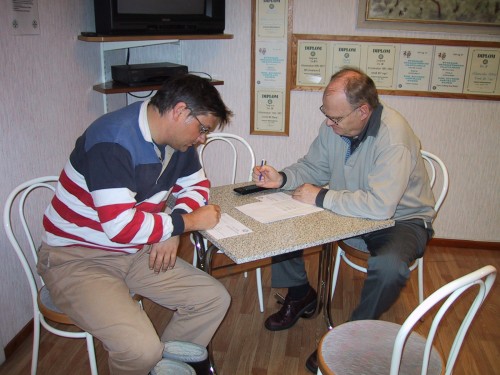 Bengt Kriström och Arne Tärnvik fyller i systemdeklarationerna. |